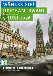 Die Wahl des Deichamtes ist eine reine Briefwahl. Sie erhalten im Mai dieses Jahres Ihre Wahlunterlagen zugesandt. Ihre Stimme können Sie bis zum Wahltag, also dem 05.06.2026 um 16:00 Uhr abgeben. Bitte beachten Sie die Postlaufzeiten. Sie können Ihre Wahlunterlagen auch jederzeit direkt in unserer Geschäftsstelle abgeben. Beachten Sie bitte die Hinweise zur Stimmabgabe in den Wahlunterlagen.